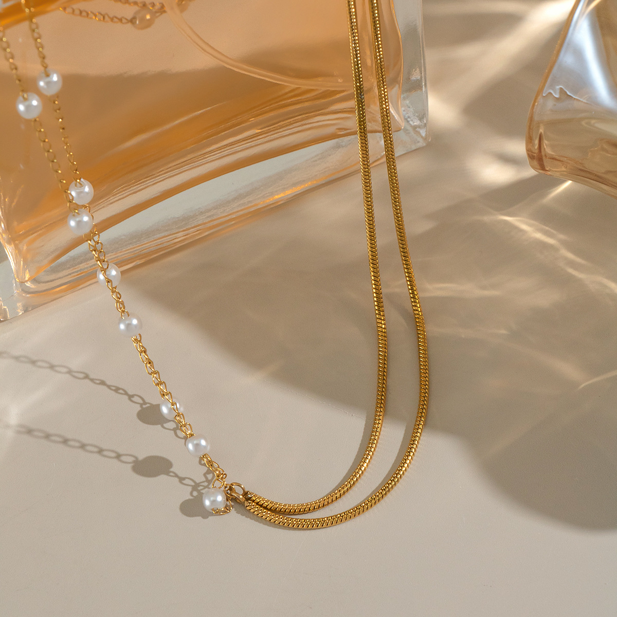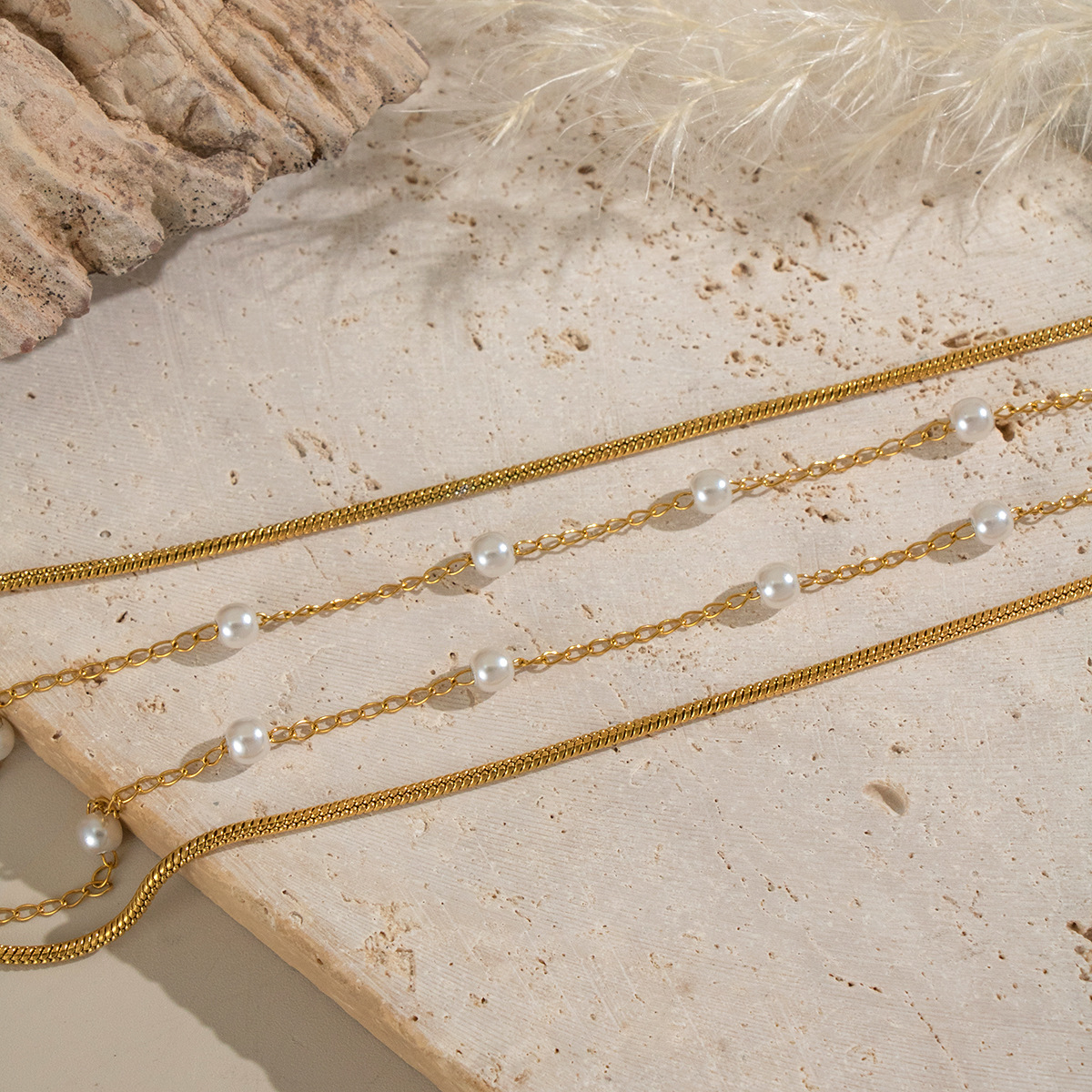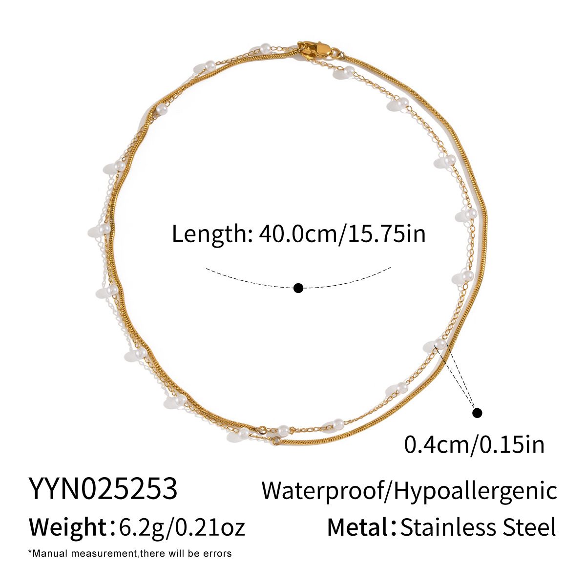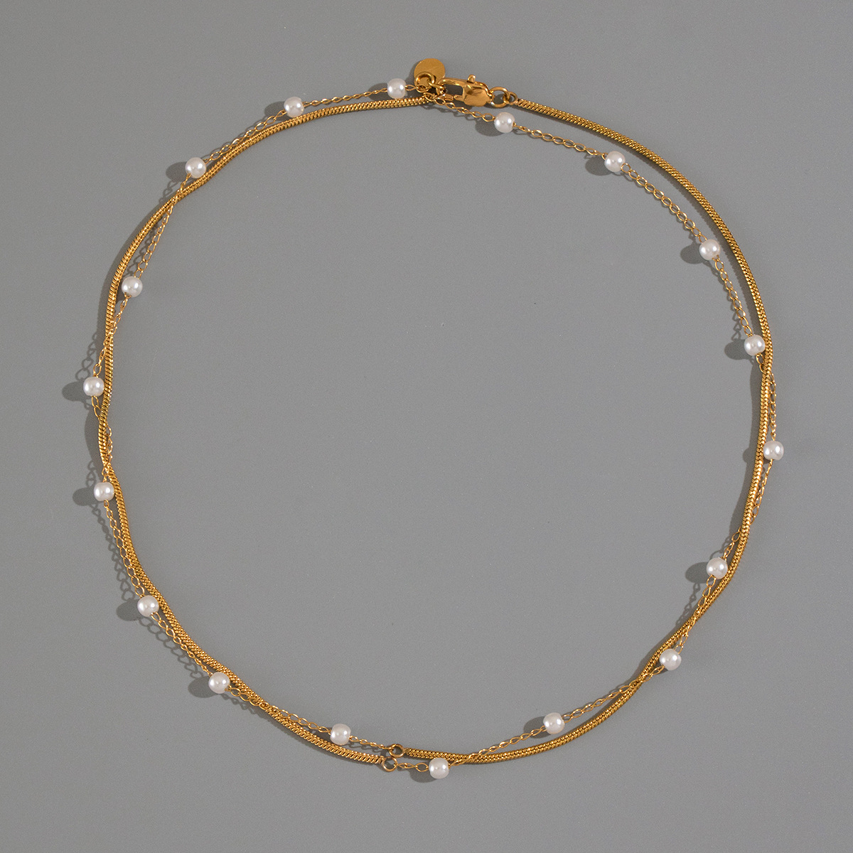 Retro Multi-layer Twin Pearl 18K Gold-plated Stainless Steel Necklace